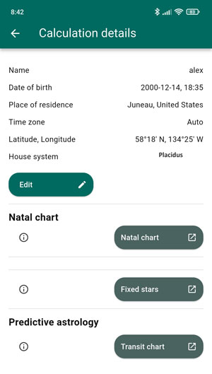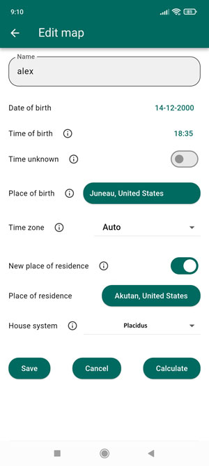 When you select “New Place of Residence” (Relocation), all charts in “Predictive Astrology” will be generated for the relocation chart. If you need natal positions, disable the relocation option, or better yet, create two sets of charts: natal (without relocation) and local (with “New Place of Residence” enabled).
