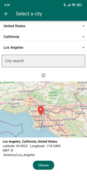 When selecting a location, fill in Country – Region – City, or simply enter the name of the locality in the search bar.