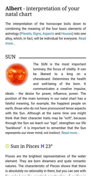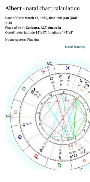 The Geocult Natal Chart app builds a natal chart based on your date of birth, providing interpretations of the Houses, planets in zodiac signs, and planetary aspects.