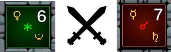 – Opposition to Saturn or Mars: −4 points